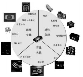 負(fù)載是BCM模塊ECU的控制對象,主要有阻性、容性和感性負(fù)載三類 ,如圖1所示。