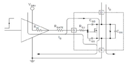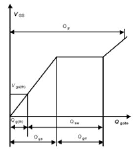 MOSFET 開(kāi)通時(shí),預(yù)驅(qū)動(dòng)輸出驅(qū)動(dòng)電流I(G),首先給電容C(GS)充電,門級(jí)電壓超過(guò)閥值電壓V(gs-th)時(shí)MOSFET導(dǎo)通,驅(qū)動(dòng)負(fù)載的電流I(D)開(kāi)始增大;電容C(GS)充滿后電門級(jí)電壓到達(dá)米勒平臺(tái),再給電容C(GD)充電,這時(shí)會(huì)有一定時(shí)間的穩(wěn)壓,直到電容C(GD)充滿電,保證門級(jí)電壓遠(yuǎn)高于閥值電壓,即保證MOSFET安全導(dǎo)通。整個(gè)充電過(guò)程需要的電荷為Q(g)。