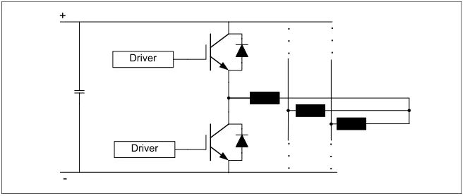下圖畫出了IGBT一個橋臂的典型結(jié)構(gòu)。在正常運(yùn)行時,兩個IGBT將依次開通和關(guān)斷。如果兩個器件同時導(dǎo)通,則電流急劇上升,此時的電流將僅由直流環(huán)路的雜散電感決定。