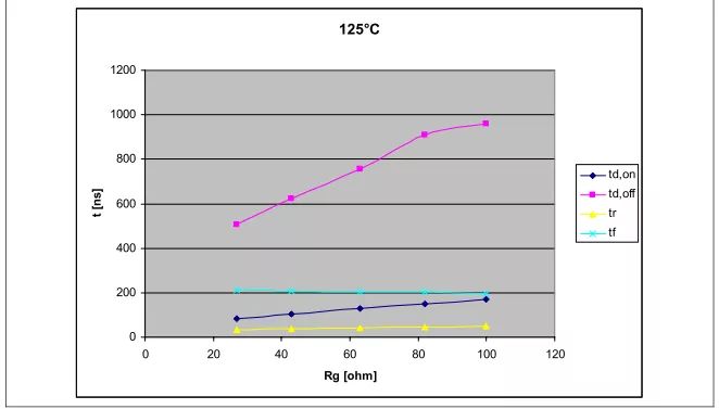 圖5 開關(guān)時間與Rg在125°C時的關(guān)系圖