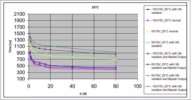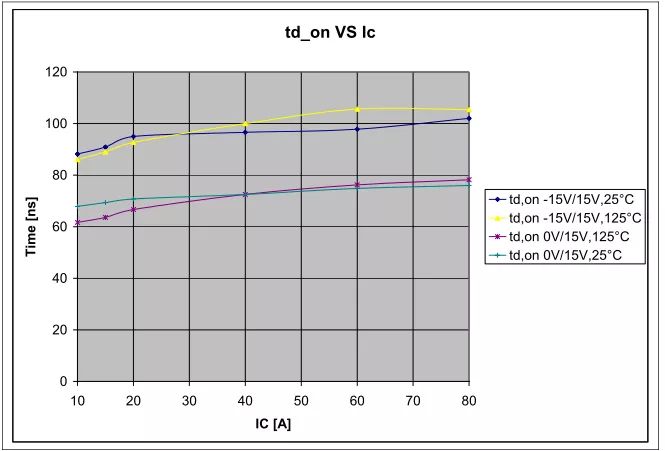 關(guān)斷延遲時間與Ic在25°C時的關(guān)系圖