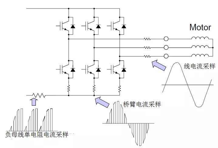 圖2 空調(diào)壓縮機(jī)逆變器常見的電流采樣方式