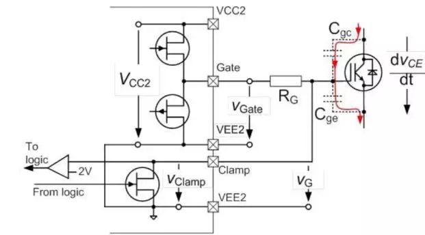 圖8 驅(qū)動芯片有源米勒鉗位功能示意